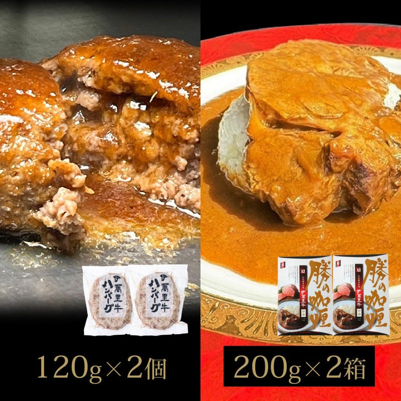 商品内容 伊萬里牛ハンバーグ120g×2個 伊萬里牛贅沢勝カレー200g×2箱