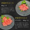 商品内容 ロース(赤身)60g×2・特上ロース(サーロイン・リブロース・ザブトンのいずれか)60g×2・上カルビ(トモバラ)60g×2・カルビ(ブリスケ)60g×2・焼肉用つけだれ付