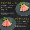 商品内容 ロース(赤身)60g×2・特上ロース(サーロイン・リブロース・ザブトンのいずれか)60g×2・上カルビ(トモバラ)60g×2・カルビ(ブリスケ)60g×2・焼肉用つけだれ付