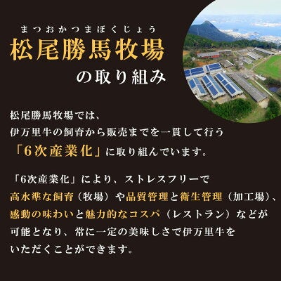 松尾勝馬牧場では、伊萬里牛(伊万里牛)の飼育から販売までを一貫して行う「6次産業化」に取り組んでいます。 「6次産業化」により、ストレスフリーで高水準な飼育(牧場)や品質管理と衛生管理(加工場)、感動の味わいと魅力的なコスパ(レストラン)などが可能となり、常に一定の美味しさで伊萬里牛(伊万里牛)をいただくことができます。